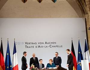 Signature du Traité d’Aix-la-Chapelle par le Président Emmanuel Macron et la Chancelière Angela Merkel