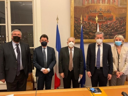 De gauche à droite : M. Rémy POINTEREAU (LR – Cher), M. Olivier CADIC (UC – Français établis hors de France), S.E M. Jorge Luis JURE, Ambassadeur de la République orientale d’Uruguay en France, M. Bruno BELIN (LR – Vienne)
