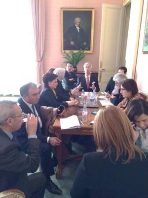 Puis la délégation a poursuivi son programme en rencontrant M. Alain RICHARD, Sénateur du Val-d’Oise, Vice-président de la commission des lois constitutionnelles, de législation, du suffrage universel, du Règlement et d’administration générale, pour un entretien sur le thème de la législation dans le cadre de l’état d’urgence.