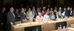 Mme Marta de Cidrac (au centre, debout) et M. Jean-Yves Leconte (à gauche) avec la délégation de hauts fonctionnaires des Balkans occidentaux