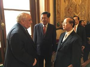 M. Bosengkham VONGDARA, ministre de la culture de la République populaire et démocratique Lao, entouré de Mme Jacky DEROMEDI, MM. Michel AMIEL et André GATTOLIN, sénateurs membres du groupe interparlementaire d’amitié, de M. Yves DAUGE, ancien sénateur et maire de Chinon, et des membres de la délégation du Laos.