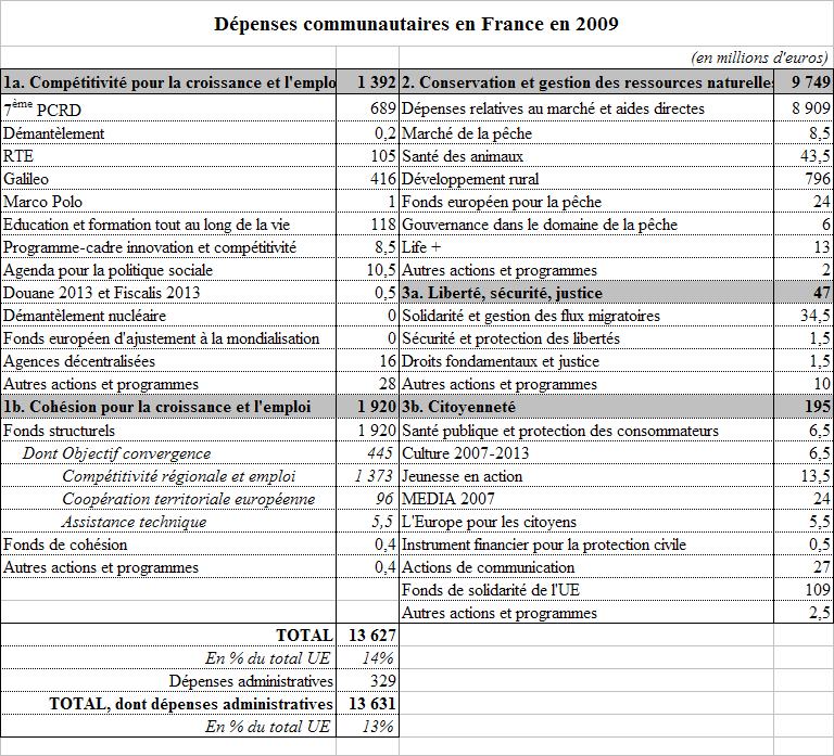 La différence positive entre notre contribution au budget communautaire et les dépenses de ce budget sur notre sol classe la France parmi les Etats membres « contributeurs nets ». Ce statut s'accentue sous l'effet conjugué du cadrage financier 2007-2013 et de l'entrée en vigueur de la décision « ressources propres » du 7 juin 2007.