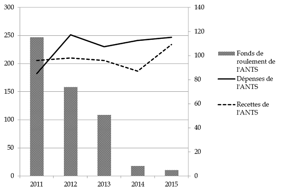 * 24 Ce montant inclut le prélèvement sur le fonds de roulement de l'ANTAI au bénéfice de l'ANTS à hauteur de 14 millions d'euros réalisé par l'article 83 de la loi n° 2014-1654 du 29 décembre 2014 de finances pour 2015.