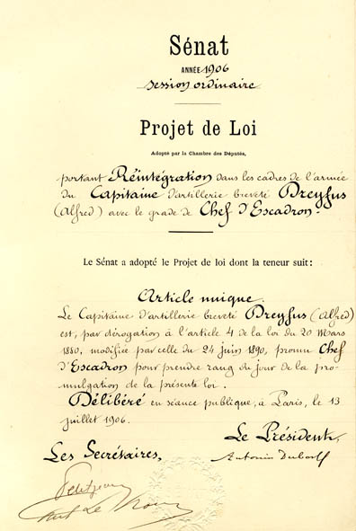 Voir le fil d’Ariane Sénat - Accueil Connaître le Sénat L’Histoire du Sénat Archives 1906-1908 : Les parlementaires portent Zola au Panthéon Projet de loi : réintégration de Dreyfus Le projet de loi de réintégration de Dreyfus dans l'armée COTE: 5S215 Partager cette page Partager sur X Partager sur Facebook Partager sur Linkedin Partager par courriel