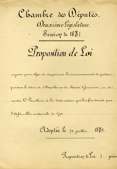Voir le fil d’Ariane Sénat - Accueil Connaître le Sénat L’Histoire du Sénat Archives 1906-1908 : Les parlementaires portent Zola au Panthéon Proposition de loi "Chapelain de Sainte-Geneviève" Proposition de loi portant suppression de la communauté des "Chapelains de Sainte-Geneviève" COTE : 5S65 Partager cette page Partager sur X Partager sur Facebook Partager sur Linkedin Partager par courriel