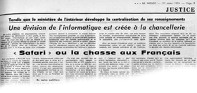En 1974, le ministère de l'intérieur avait bâti un fichier informatisé au nom évocateur : S.A.F.A.R.I., acronyme de système automatisé pour les fichiers administratifs et le répertoire des individus. Ce système prévoyait de créer une base de données centralisée de la population, en utilisant le fichier de sécurité sociale comme identifiant commun à tous les fichiers administratifs. Devant le tollé généralisé provoqué par ce projet - le journal Le Monde allant jusqu'à titrer « SAFARI, ou la chasse aux Français » -, le Premier ministre de l'époque, Pierre Messmer, ne put que le retirer et créer dans la foulée une commission dite Informatique et liberté, chargée de proposer une réglementation sur l'utilisation des moyens informatiques.