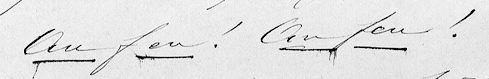 R : je pense que le feu n'a pas été mis méchamment, mais qu'un tuyau ou un conduit servant à faire du feu peut avoir, à la longue, échauffé la partie de la charpente qui en était proche, et occasionné l'incendie ; à moins qu'un des nombreux ouvriers employés dans le Palais n'ait par malveillance placé une mèche ou un objet qui à la longue ait pu causer un incendie.