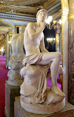 Chalgrin décore chacune des faces du salon de quatre avant-corps avec entablement posé sur deux colonnes de marbre à chapiteau composite. Chacun est surmonté d’un trophée et d’un buste antique, dont le fameux César de Pajou. L’architecte y expose également les statues de la Prudence, commandée à Deseine en 1802, et celle d’Harpocrate, dieu du silence, commandée à Mouchy avant la Révolution pour Louis XVI, et toujours en place dans le salon.
