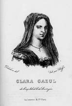 Passionné de théâtre espagnol, Mérimée conçoit en 1825 l'idée d'une mystification : le Théâtre de Clara Gazul, recueil de pièces de théâtre qu'il présente comme l'oeuvre d'une célèbre comédienne espagnole, Clara Gazul, qu'un imaginaire M. Joseph Lestrange vient de traduire. Une biographie imaginée, des notes explicatives et un portrait de la comédienne par Delécluze (en fait Prosper Mérimée lui-même représenté avec une mantille, épaules nues et une croix d'or autour du cou) achèvent de rendre la fiction vraisemblable. L'oeuvre excita la curiosité de la jeunesse lettrée et si Le Globe révèle la mystification, plusieurs revues tombent dans le piège. « Je ne conteste pas le plaisir qu'une mystification peut procurer à son auteur, écrit Mérimée en 1835 ; mais la première condition pour qu'elle soit bonne, complète, c'est qu'elle ne lui coûte pas trop de peine ».