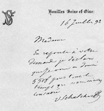 Victor Schoelcher - Lettre de 1892