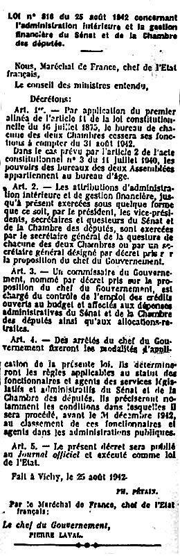 Journal Officiel du vendredi 26 août 1942 (extrait)