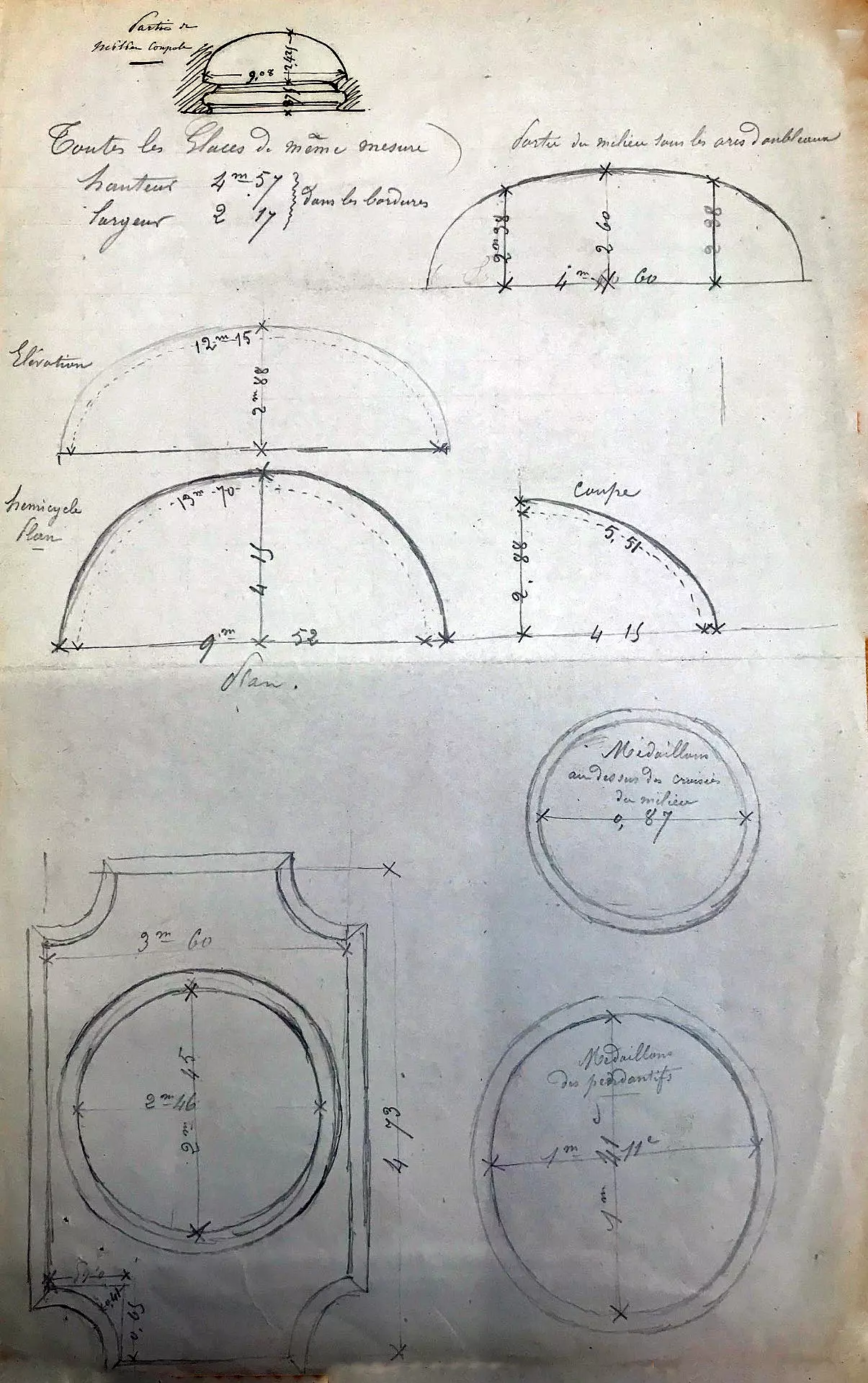 Croquis de la coupole,travaux Gisors, travaux d’art (1836-1857), dossier galerie du trône. Arch. du Sénat, DAPJ 36 / 573S 36/ABJ 36,