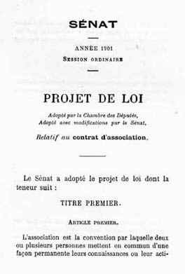 La loi du 1er juillet 1901 relative au contrat d’association marque l’aboutissement de la grande œuvre législative libérale de la IIIème République. Elle consacre une liberté fondamentale, individuelle et collective, que Tocqueville considérait comme la première des libertés : " Dans les pays démocratiques, la science de l’association est la science-mère ; le progrès de toutes les autres dépend des progrès de celle-là ". C’est assurément une conception démocratique et républicaine de la liberté que consacre la loi de 1901, veillant, en abolissant la loi Le Chapelier, à ne pas faire resurgir les corporations de l’Ancien régime et à prolonger ainsi l’œuvre de la Révolution française.