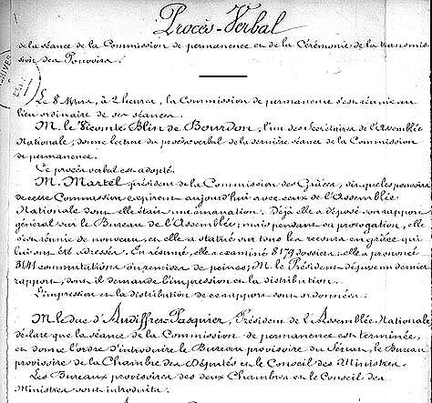 Extrait du procès-verbal de la dernière séance de la commission de permanence