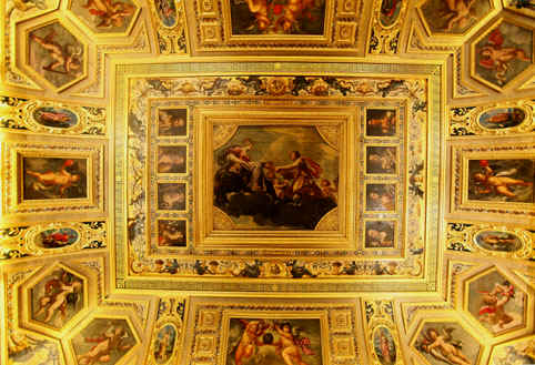 Piliers et pilastres aux arabesques sur fond d'or, angelots, riches peintures de plafond représentant l'Apothéose de Marie de Médicis, tout dans cette salle crée une atmosphère qui surprend le visiteur.