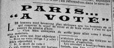 Pour la première fois, les Françaises prennent part à un scrutin à l'occasion des élections municipales d'avril- mai 1945. Dans le contexte de l'après-guerre, cet événement suscite assez peu de commentaires, on trouve quelques lignes dans les journaux : « quant aux femmes, promues enfin au même rang que les citoyens ... elles ont montré que l'exercice de leur nouveau droit leur apparaissait comme un devoir ».