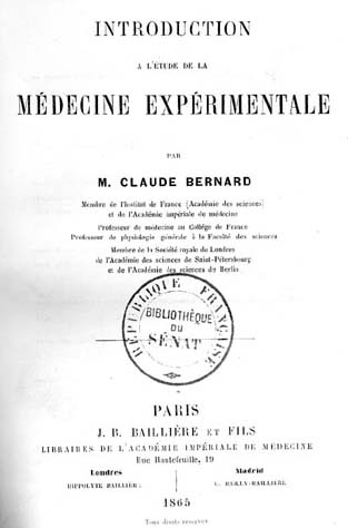 Il en a exposé les principes fondamentaux dans son ouvrage L'introduction à l'étude de la médecine expérimentale. Il a en particulier développé le schéma «observation, hypothèse, confirmation/infirmation».
