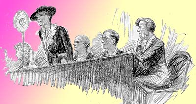 "Divertir au lieu de prêcher" est son mot d'ordre. Le 1er juin 1936, jour de la rentrée des Chambres après les élections, elle offre aux députés des bouquets de myosotis. Le 2, elle est au Sénat. Les suffragettes, souvent accusées de passer plus de temps sur les estrades que dans leurs foyers, sont fréquemment accueillies dans les meetings par les cris de "Ta soupe...Tes chaussettes..." C'est donc tout naturellement que Louise Weiss offre aux sénateurs une paire de chaussettes et l'engagement de les raccommoder même si le droit de vote leur est accordé. A Henri Merlin, sénateur de la Marne qui avait fait ajourner le texte sur la création de "conseillères municipales facultatives adjointes", c'est un autre cadeau qu'elle fait : une aubade de saxophones et de pistons qui provoque la réprobation du groupe féministe du Sénat. Le lendemain avec d'autres militantes elle s'enchaîne entre le ministère de la marine et la terrasse de chez Maxim's, barrant la rue Royale et occasionnant un magnifique bouchon.