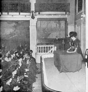 Marguerite Durand devant les électeurs du IXème arrondissement de Paris, en mars 1910