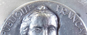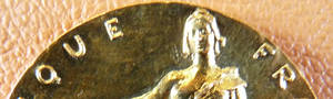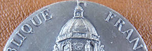 Médaille d'identité du Sénat de la Cinquième République, 2011 (bronze). A/ REPUBLIQUE FRANCAISE LIBERTE EGALITE FRATERNITE. Buste de la République, de trois-quarts à droite, coiffée d'un bonnet phrygien orné de la cocarde tricolore. Au bas : LANGLOIS, signature du graveur. R/ SENAT. Vue en perspective de la salle de lecture de la Bibliothèque. A l'exergue : 2011. Au-dessus : un cartel destiné à recevoir le nom du sénateur.