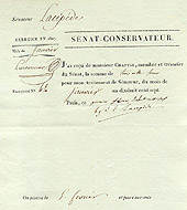 - Le chancelier veille sur la bibliothèque, les archives et les objets d'art. Il scelle les actes du Sénat et délivre à ses membres divers certificats et papiers d'identité.