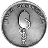 Il devient enfin l'emblème du Sénat conservateur sur les médailles commémoratives. Le symbole se retrouve encore dans les armoiries des sénateurs devenus comtes et sur les chaises de la salle des Conférences.