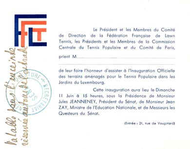 Carton d'invitation pour l'inauguration en 1939.
