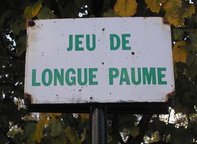 ![]() | Différente de la courte paume qui se pratique dans une salle, la longue paume se joue à l'extérieur, sur une longue bande de terrain de douze à quatorze mètres de large et d'une longueur de quarante-six mètres au minimum mais variable en fonction des parties. Il en existe deux sortes : les parties « enlevées » lorsque la balle doit obligatoirement, à chaque échange, franchir une zone neutre de terrain ; et les parties « terrées », sans obstacle à franchir, où les joueurs ont la possibilité de rabattre la balle volontairement au sol. Ce sport, l'un des plus anciens en France, est toujours pratiqué dans le jardin du Luxembourg. L'installation dans le jardin du Luxembourg | ||