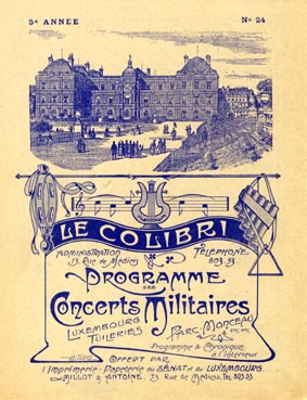 En 1883, deux publications concurrentes, « le petit Orchestre » et « Paris spectacle », sont proposées aux spectateurs. Quelques années plus tard, des autorisations de même nature sont accordées à une petite feuille donnant en prime à ses acheteurs une tablette de chocolat ou un éventail, ainsi qu'à des publications vendues ou distribuées gratuitement telles « le Vert-vert » et « Luxembourg-programme ». En 1913, l'administration étudie la possibilité de transformer cette autorisation en concession. Le 17 juillet, la vente des programmes de concerts dans le jardin du Luxembourg est mise en adjudication. Des affiches sont imprimées et placardées dans tous les lieux et endroits accoutumés pour inviter les candidats intéressés à se manifester.