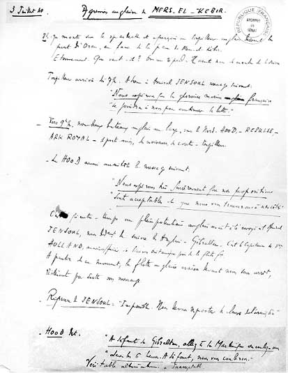 Première page du journal de bord concernant la journée du 3 juillet 1940