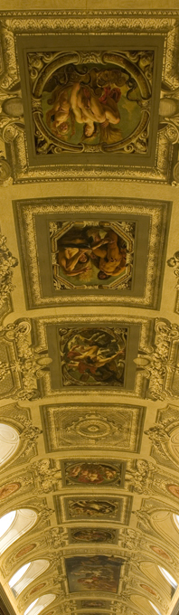 « En distribuant ces 12 tableaux avec goût au plafond de la galerie, en continuant les ornements analogues qui y sont pour remplir les vuides, cela produira un bel effet et ajoutera de la magnificience à ce monument.
