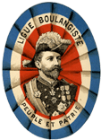 Le général Georges Boulanger (1837-1891) fait son entrée dans la vie politique française comme ministre de la guerre dans les cabinets Freycinet et Goblet (1886). Associées à son nationalisme revanchard et à ses partis pris républicains, les mesures qu'il adopte (modernisation de l'armement, améliorations des conditions de vie des soldats, radiation des cadres de l'armée des membres de famille ayant régné sur la France) lui assurent une popularité considérable.