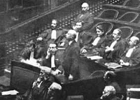 Le 23 octobre 1919, après de longs mois d'instruction, le procès s'ouvre au Palais du Luxembourg. A l'issue de 31 audiences, le seul chef d'accusation réuni contre lui se limite à l'entretien d'une « correspondance avec des sujets d'une puissance ennemie. »