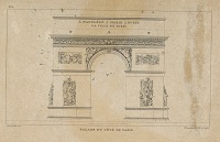 Description de l'Arc de triomphe provisoire, réalisé en charpentes, stuc et toiles peintes pour l'entrée à Paris de l'archiduchesse Marie-Louise à l'occasion de son mariage avec Napoléon Ier.