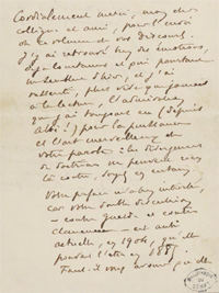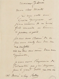 "Il s’agit de la seule lettre entre les deux hommes que nous connaissions. La correspondance reçue par Jaurès n’a pas été conservée pour l’essentiel. Républicain et dreyfusard, Auguste Rodin (1840-1917) semble selon ses biographes avoir toujours gardé une grande prudence en politique que ne dément pas tout à fait cette lettre courtoise et chaleureuse. Parmi l’immense bibliographie consacrée à Rodin, signalons pour notre perspective Rose-Marie Martinez, Rodin, l’artiste face à l’État, Paris, Séguier, 1996."