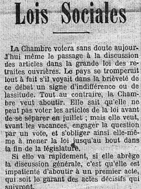 - "Lois sociales" L’Humanité du 11 juillet 1905