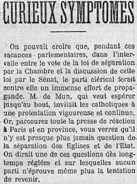 - "Curieux symptômes" L’Humanité du 20 septembre 1905