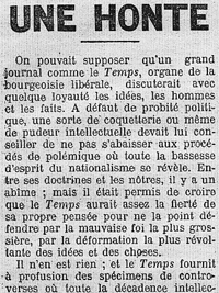 - "Une honte" L’Humanité du 8 mars 1905
