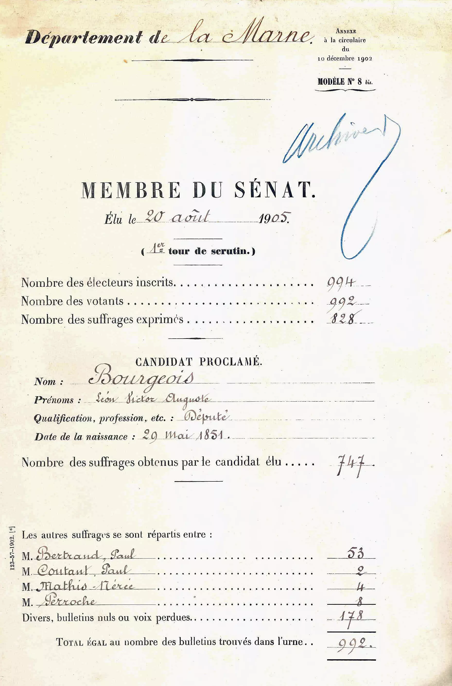 Documents : Léon Bourgeois sénateur