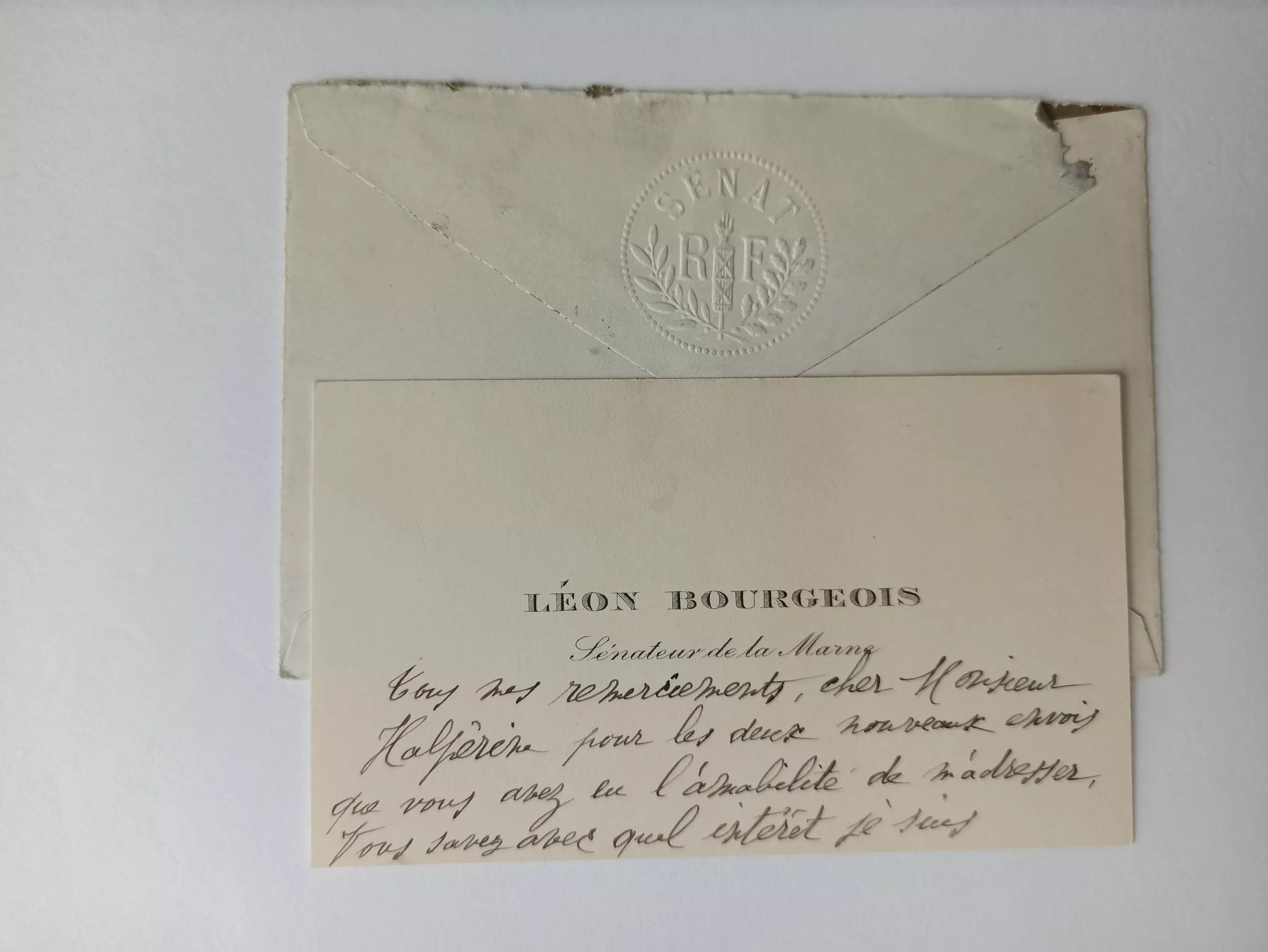 La Bibliothèque du Sénat conserve une lettre de Léon BOURGEOIS à Jean JAURÈS :