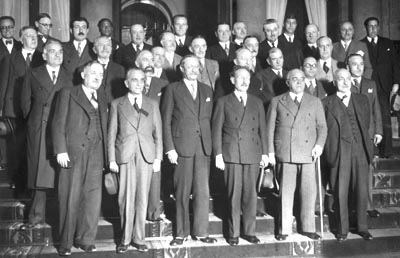 La Société des Nations évoqua la menace de guerre, le 15 septembre. Elle adopta une résolution le 6 octobre, selon laquelle les membres de la S.D.N., signataires du traité des Neuf puissances de 1932 (Etats-Unis, Grande-Bretagne, France, Belgique, Japon, Chine, Italie, Pays-Bas, Portugal) examineraient le dossier à Bruxelles, en vue de proposer une médiation. La France envoya une délégation qui comprenait Yvon DELBOS, ministre des Affaires étrangères, et Gaston MONNERVILLE. Sa nomination souleva quelques surprises et G. MONNERVILLE invoqua la nécessité de protéger les intérêts français en Indochine.