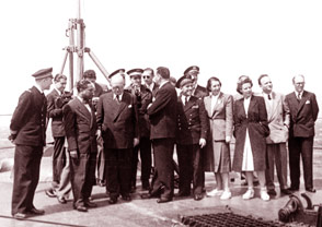 Quoique élu du Lot, à partir de novembre 1948, G. MONNERVILLE ne rompt pas du tout ses liens étroits avec l'Outre-Mer. Tous les représentants parlementaires de ces régions sont des habitués du Petit-Luxembourg. Et lui-même multiplie les visites, privées mais aussi officielles. | | Gaston MONNERVILLE, Président du Conseil de la République, accompagne Vincent AURIOL, Président de la République, au cours d'un voyage officiel en AOF (1947) -