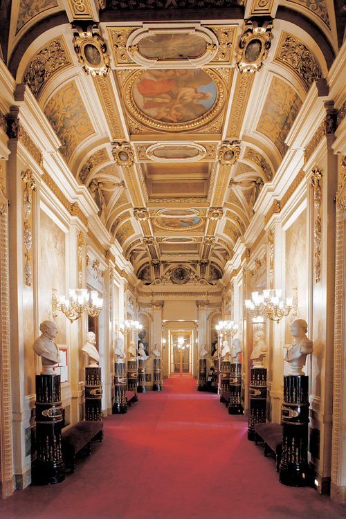 C'est par la galerie des bustes que le président du Sénat, passant entre deux haies de gardes républicaines, se rend dans l'hémicycle.