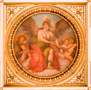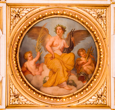 Au plafond quatre médaillons peints par Vauchelet représentant des figures allégoriques entourées d'enfants.