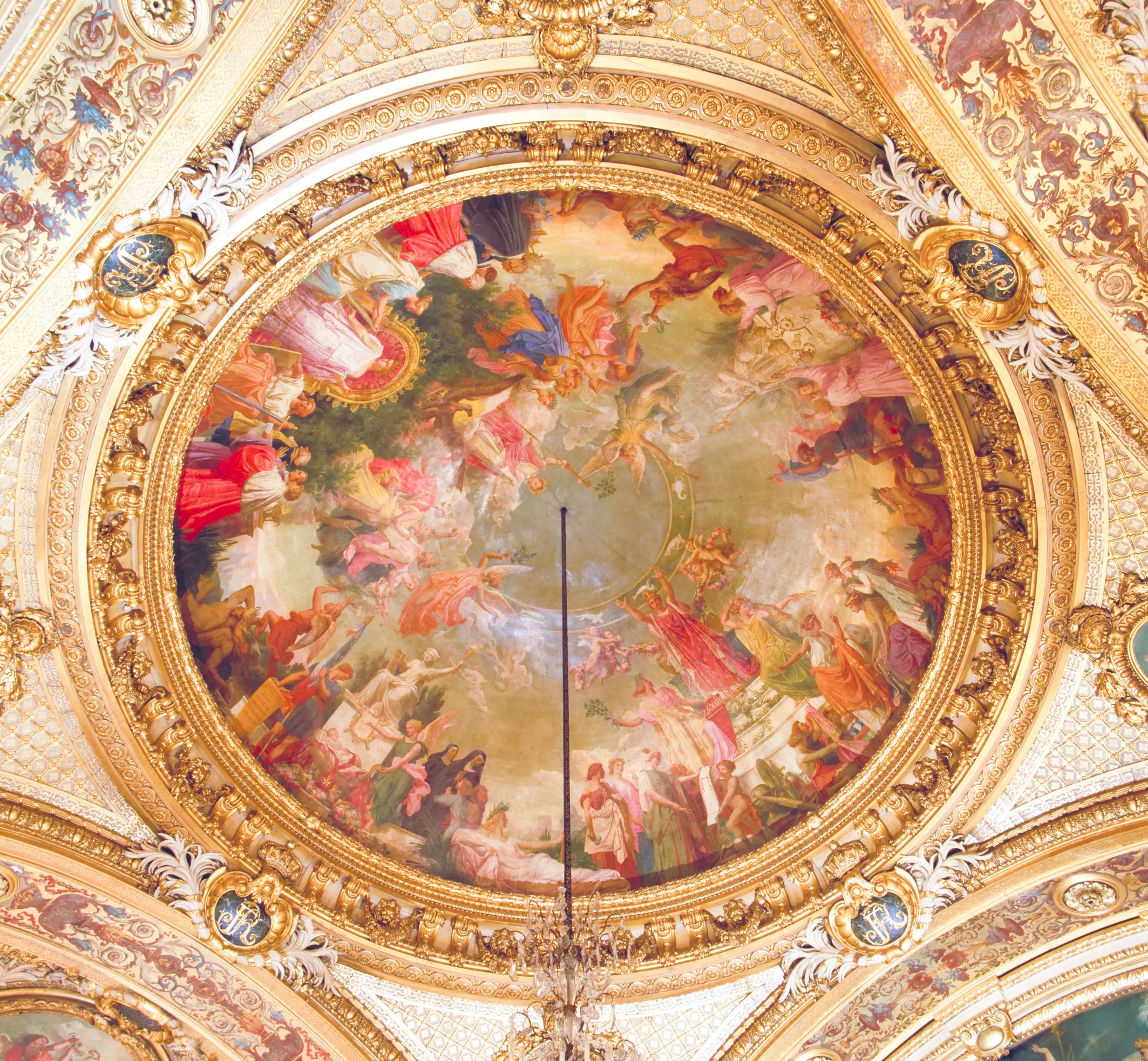 Dans la coupole, une peinture de Jean Alaux (1786-1864) - qui a composé le décor de la salle des États généraux à Versailles - est chargée de représenter, selon le programme officiel, l'apothéose de Napoléon Ier - drapé dans son manteau impérial rouge et les bras étendus dans un geste de paix - ainsi que "l'Avenir ouvert" par le règne de Napoléon III.