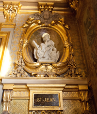 Dans les quatre autres se trouvent les quatre évangélistes. Jean est représenté avec son attribut, l'Aigle et la quatrième Évangile à la main (ci-contre).