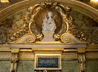 Six statues occupent les niches situés au-dessus de chacune des portes de la chapelle. Elles ont été sculptées en 1859 par Klaugmann. Dans les deux plus petites figures se trouvent le pape Eugène et Saint-Louis (ci-contre).