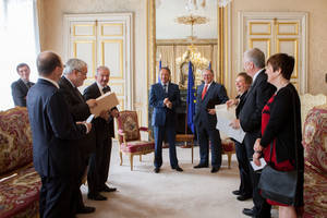 La délégation a également été reçue par le Président du Sénat, Jean-Pierre BEL, le jeudi 27 juin (voir photo ci-contre), pour un entretien qui a duré près d’une heure et au cours duquel ont été notamment évoquées les questions soulevées par l’antiparlementarisme croissant constaté en France et au Québec. Les présidents ont également affirmé leur attachement au développement des relations interparlementaires franco-québécoises et à la défense de la francophonie.