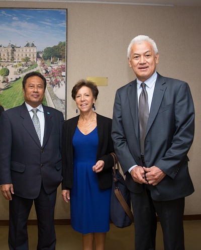 Le Président de la République des Palaos, M. Tommy REMENGESAU, a remercié la France pour son engagement auprès des États insulaires du Pacifique dans la lutte contre les menaces climatiques. Il a souligné le caractère crucial de la Conférence Paris Climat 2015 CDP/COP 21 qui se tiendra à Paris en décembre 2015 et a mis en avant le fait que les îles du Pacifique sont depuis longtemps impliquées dans la lutte contre le réchauffement climatique. Les îles Palaos ont ainsi pris l’initiative de déclarer leur zone économique exclusive « sanctuaire marin national », seuls 20% de cette zone économique exclusive pouvant être exploités pour l’écotourisme et la pêche commerciale.