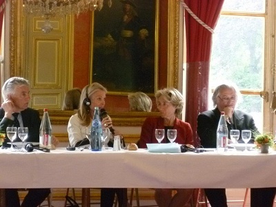 De gauche à droite : M. François Marc, Vice-président du groupe d'amitié, S. Exc.Mme Jane Hartley, Mme Caroline Cayeux et M. Jeanny Lorgeoux, Vice-président du groupe